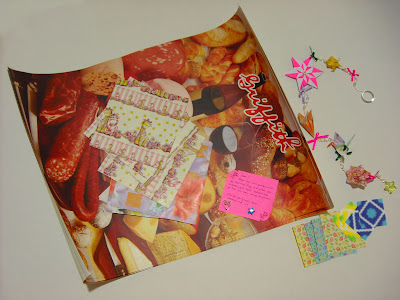 Um dia elogiei uns papéis lindos que as queridas Regina e Mariza, do Benchic Kusudama mostraram numas peças. E não é que recebo um mail da Regina pedindo meu endereço pra me mandar??
